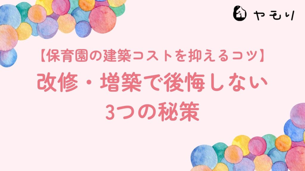 保育園の建築・改修は、経営において極めて大きな投資です。コストを抑えるということは、単に安い材料を使うことではありません。